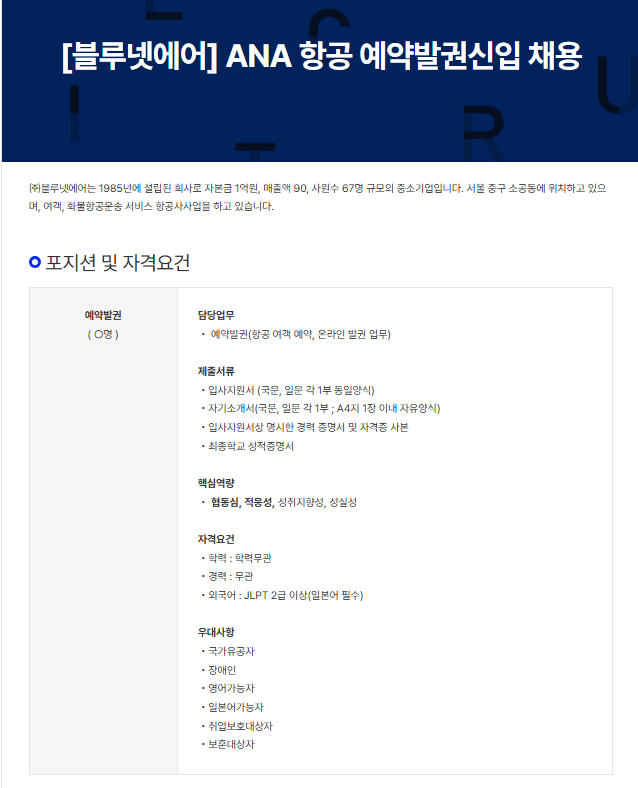 [ANA항공] 블루넷에어 예약발권 신입 채용
