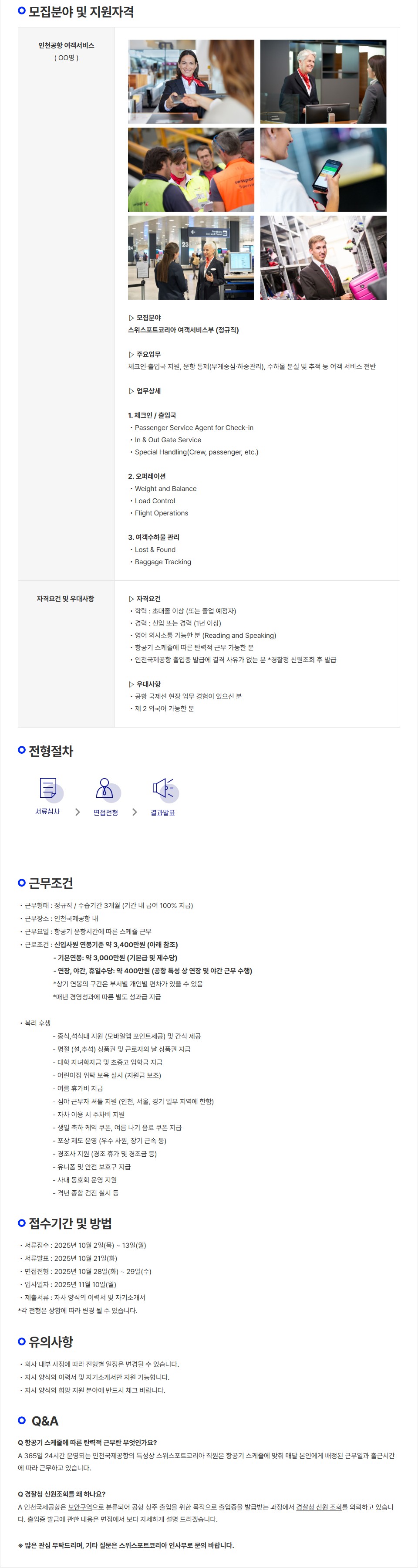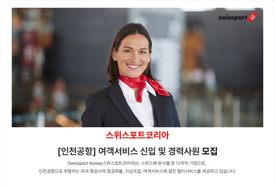 [스위스포트코리아] 인천공항 여객서비스 신입 및 경력사원 채용