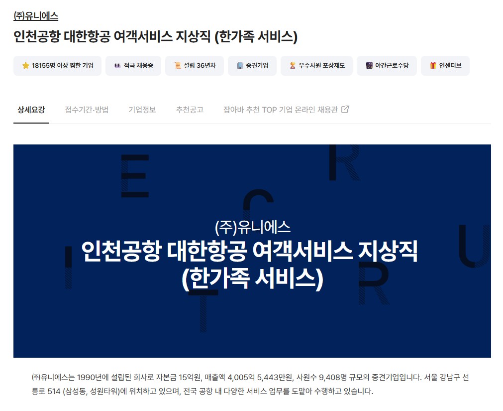 [㈜유니에스] 인천공항 대한항공 여객서비스 지상직 (한가족 서비스)