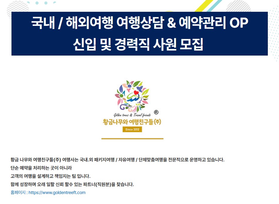 [황금나무와 여행친구들(주)] 여행상담 & 예약관리.기획 오퍼레이션