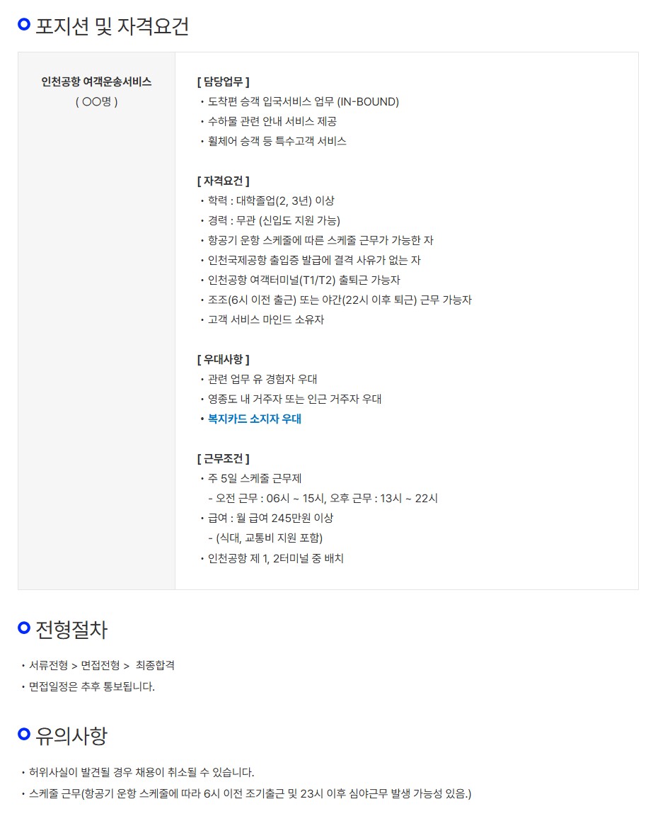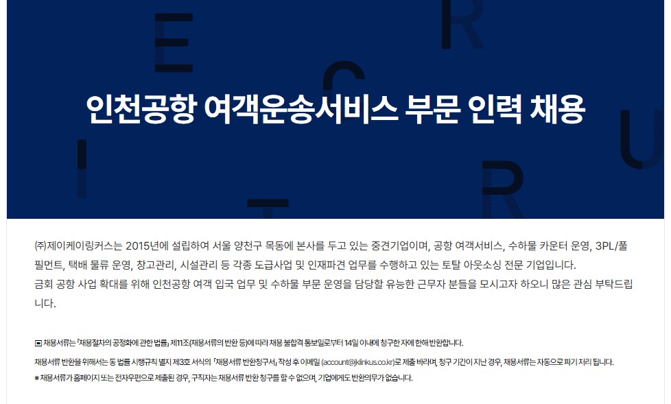 [㈜제이케이링커스] 인천공항 여객운송(입국 및 수하물)서비스 부문 인력 채용 - 학력/어학 무관