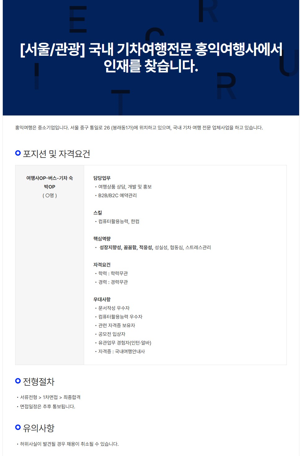 [홍익여행] 국내 기차여행전문 홍익여행사에서 인재를 찾습니다.