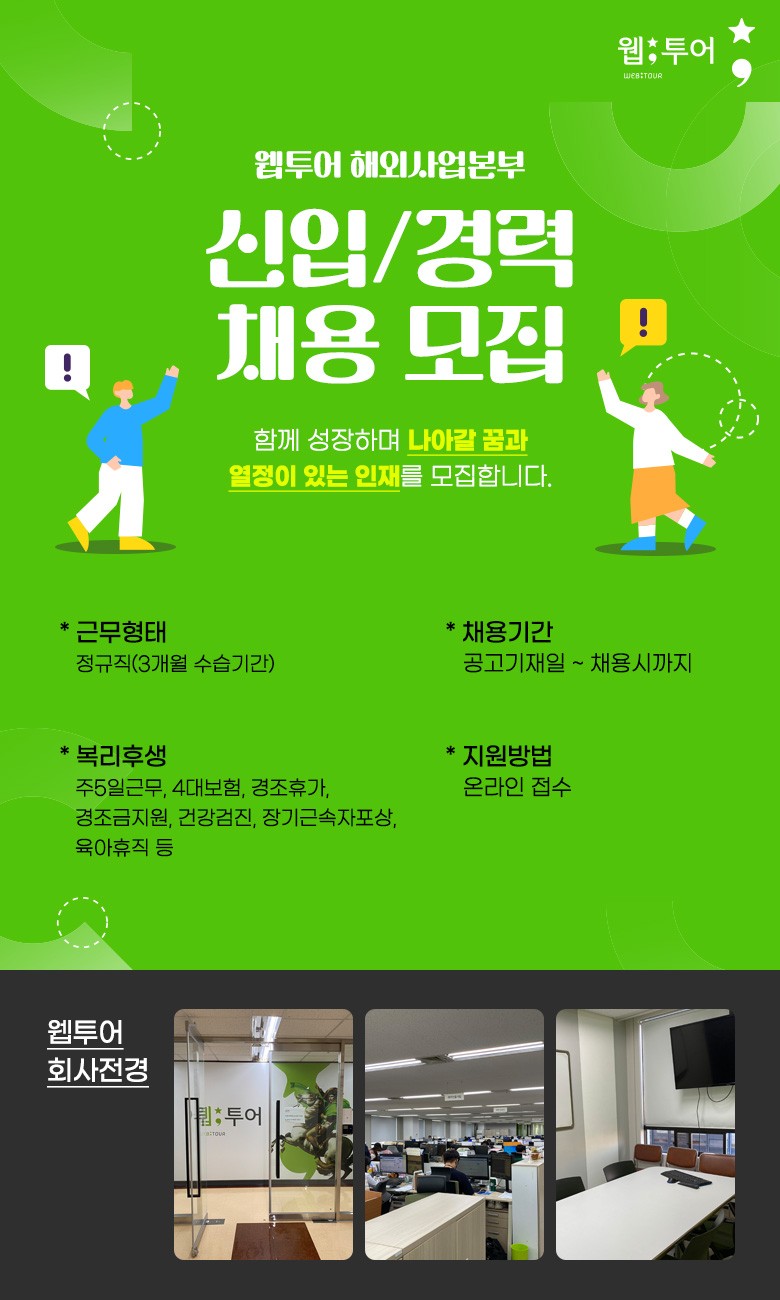 [웹투어㈜] 하나투어 패키지여행 예약관리 OP 신입/경력직원 채용