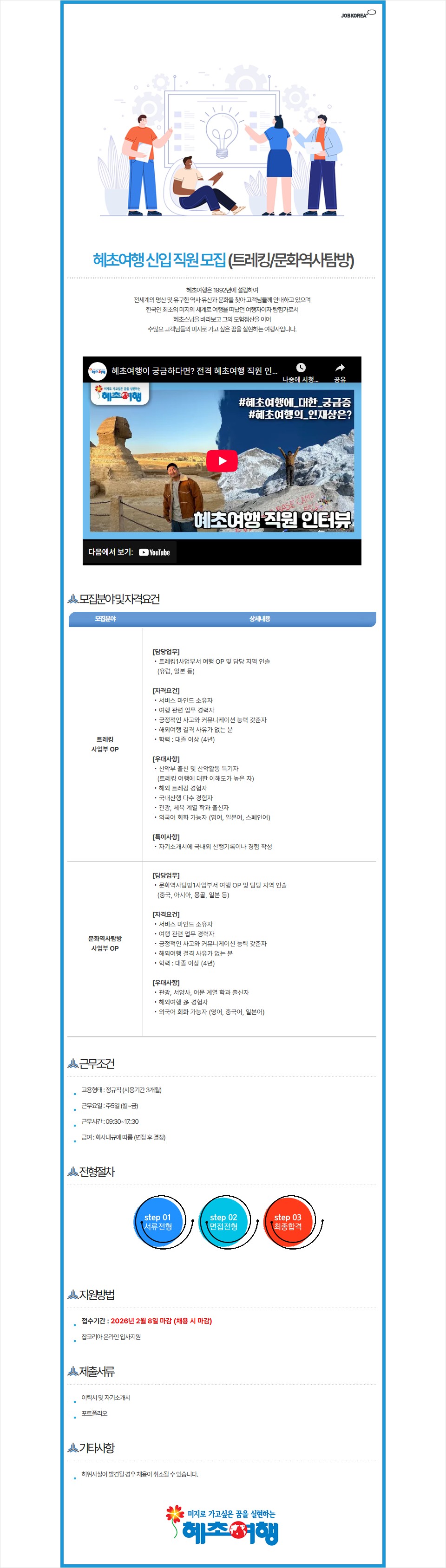 [혜초여행개발㈜] 신입 직원 모집(트레킹,문화역사탐방)