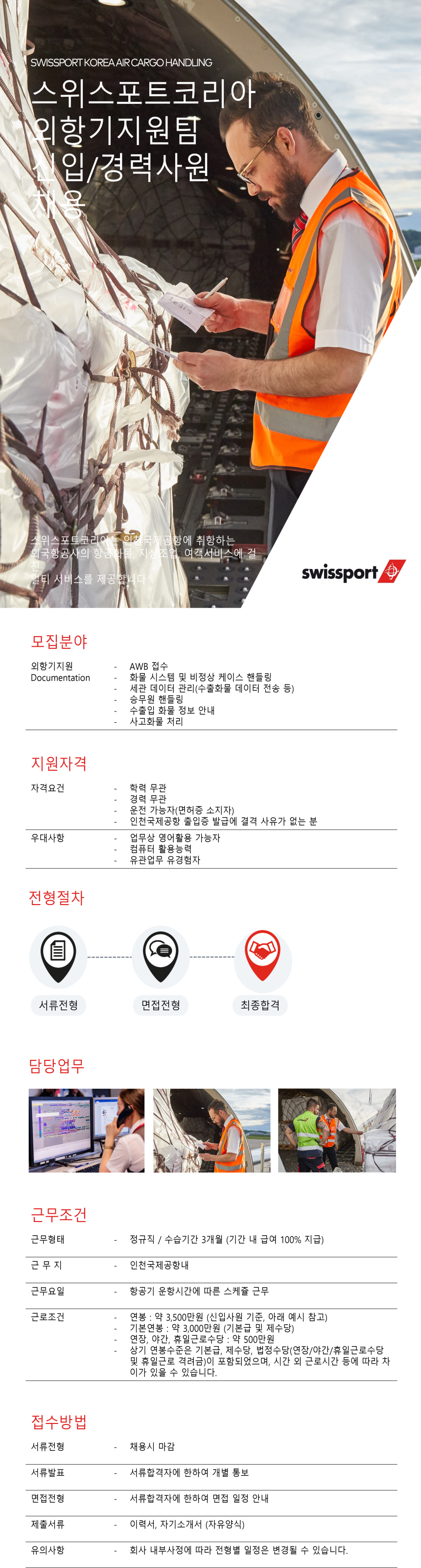 [스위스포트] 인천공항 스위스포트코리아 외항기지원팀?신입/경력사원 모집-학력무관