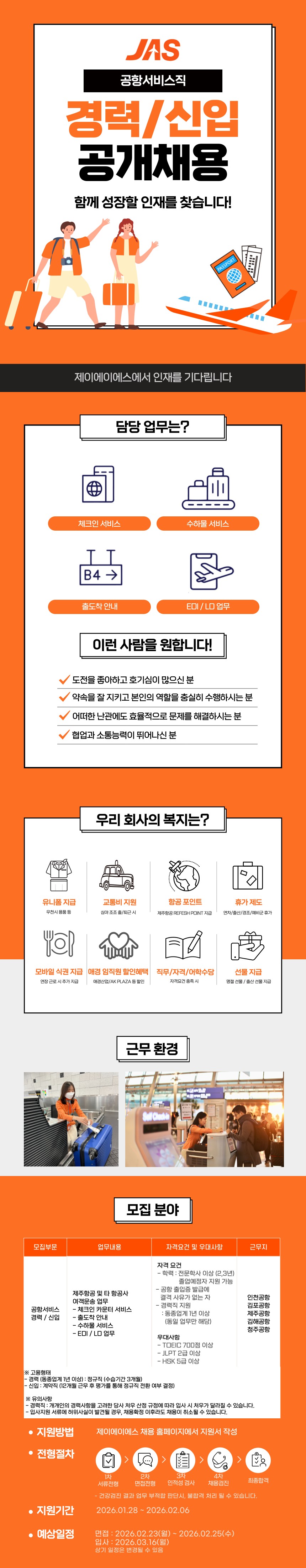 [제주항공] 제이에이에스 공항서비스직 채용 (인천/김포/제주/김해/청주)