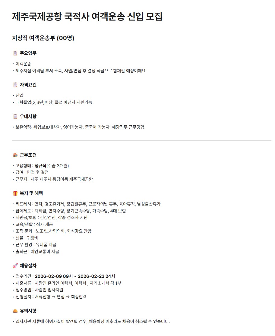 [샤프에비에이션케이] 제주국제공항 국적사 여객운송 신입 모집