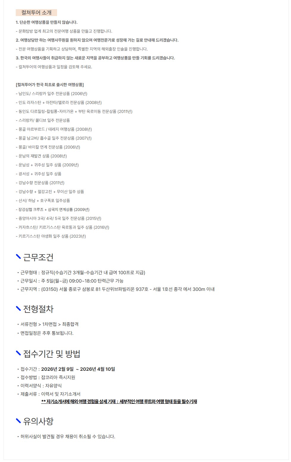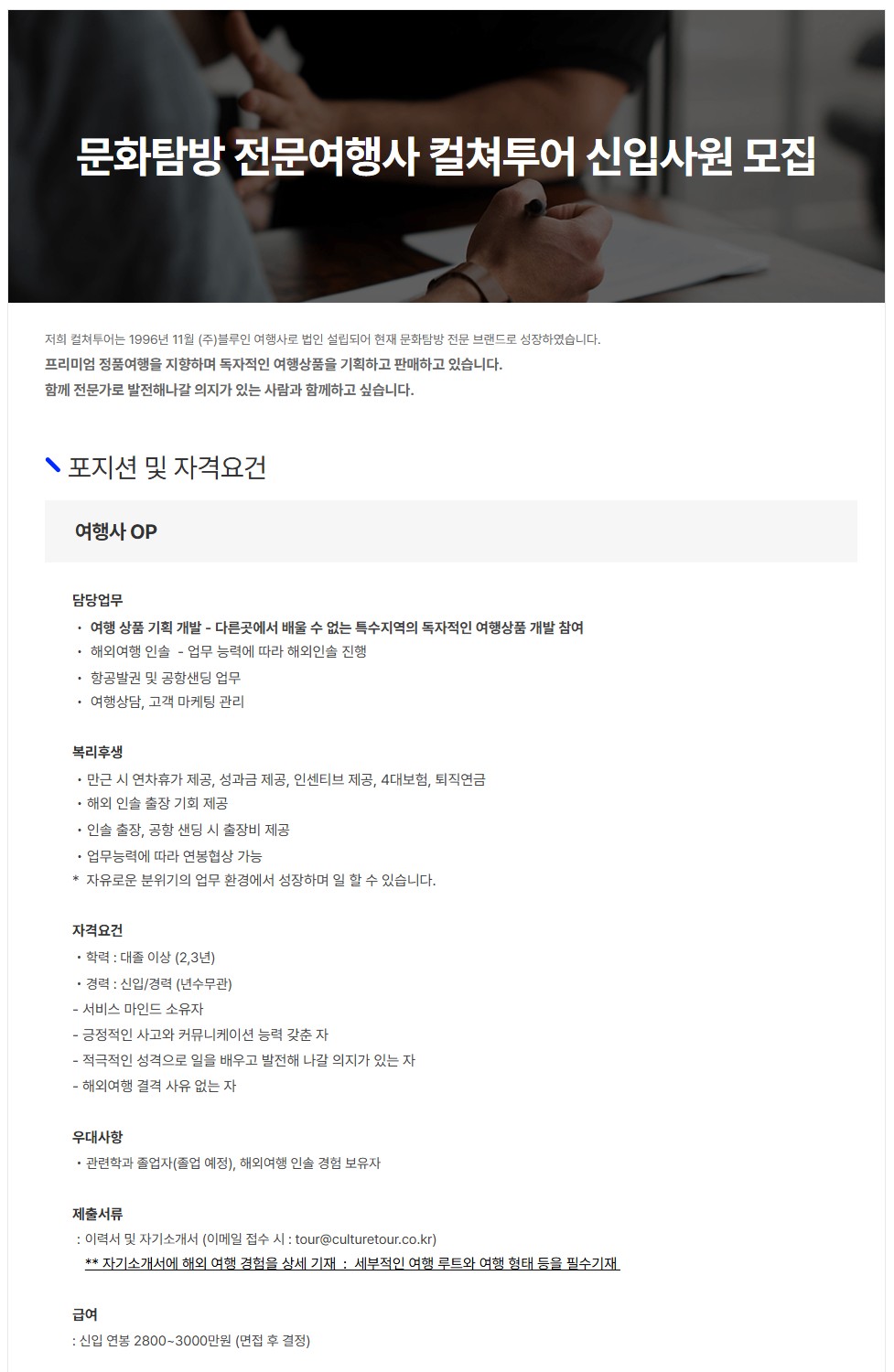 [㈜컬쳐투어] 문화탐방 전문여행사 컬쳐투어 신입사원 OP 모집