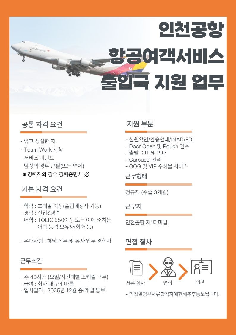 [유니에스] 인천공항 아시아나 항공여객서비스 운송지원 업무
