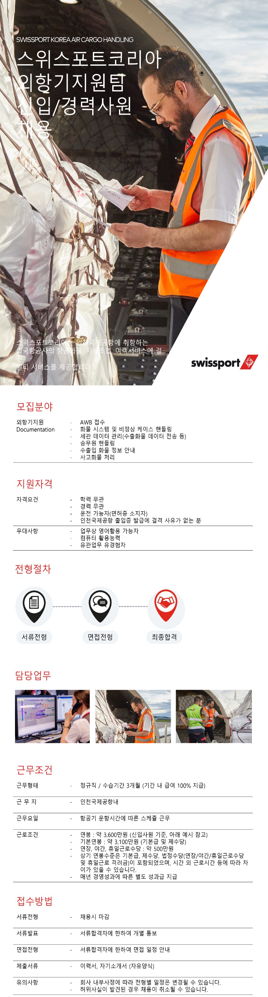 [스위스포트코리아] 인천공항 외항기지원팀(항공화물) 신입/경력사원 모집