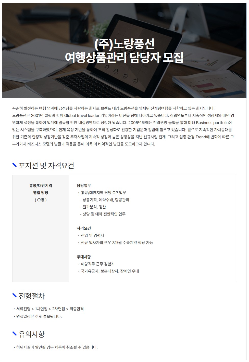 [(주)노랑풍선] 여행상품관리 담당자 모집