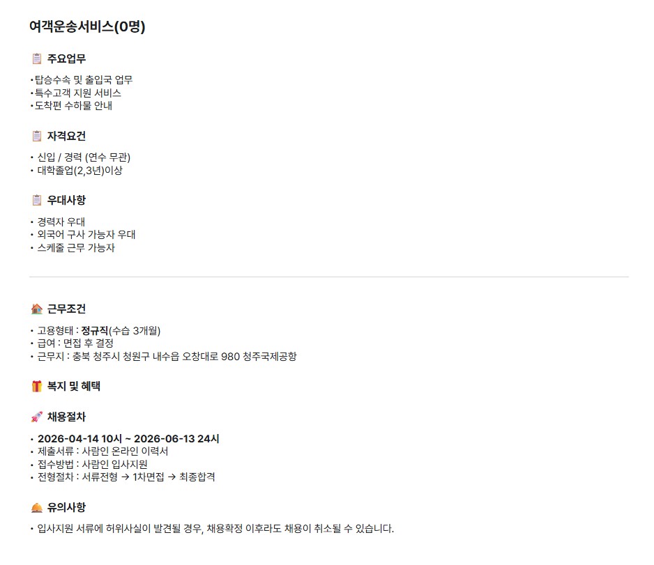 [월드유니택] 청주공항 아시아나항공 여객운송 서비스 직원 채용