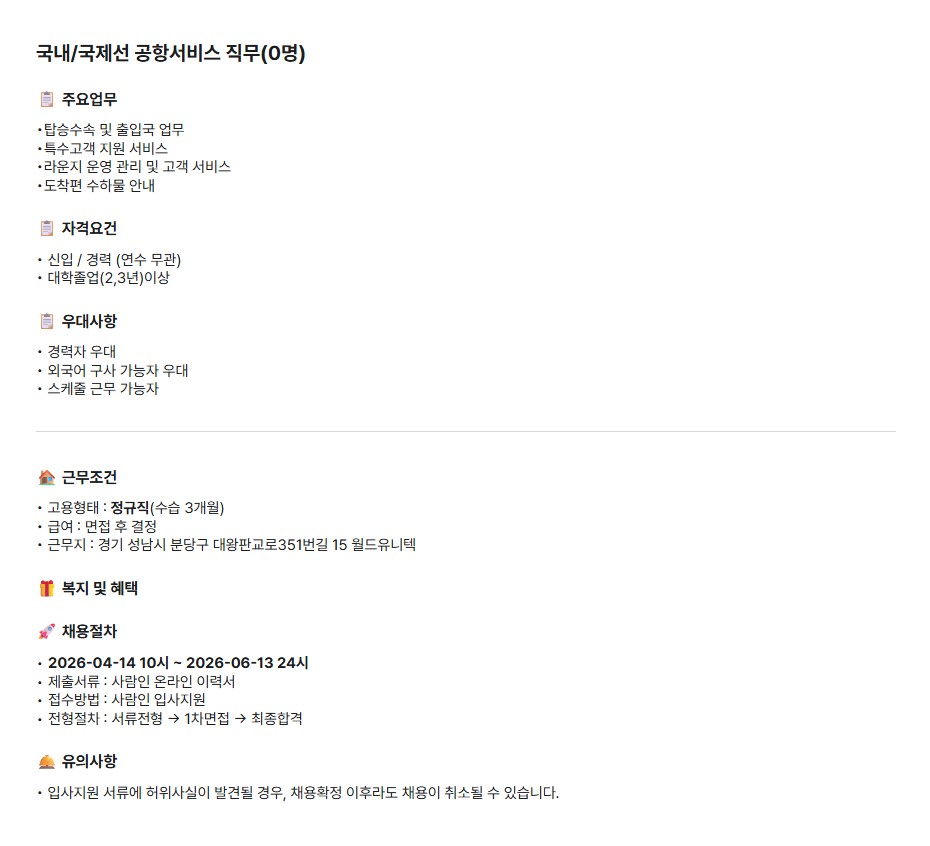 [월드유니텍] 김포공항 아시아나항공 여객운송 서비스 직원 채용