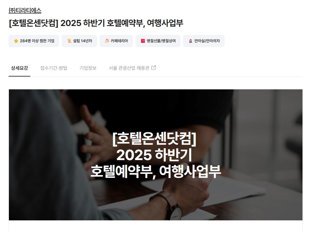 [㈜티라티에스] 호텔온센닷컴 2025 하반기 호텔예약부, 여행사업부 OP채용