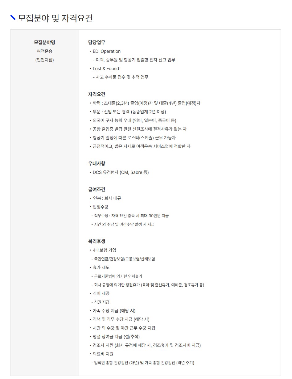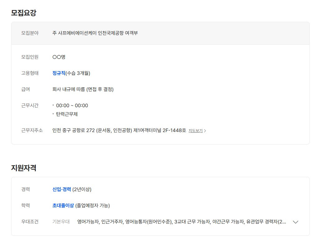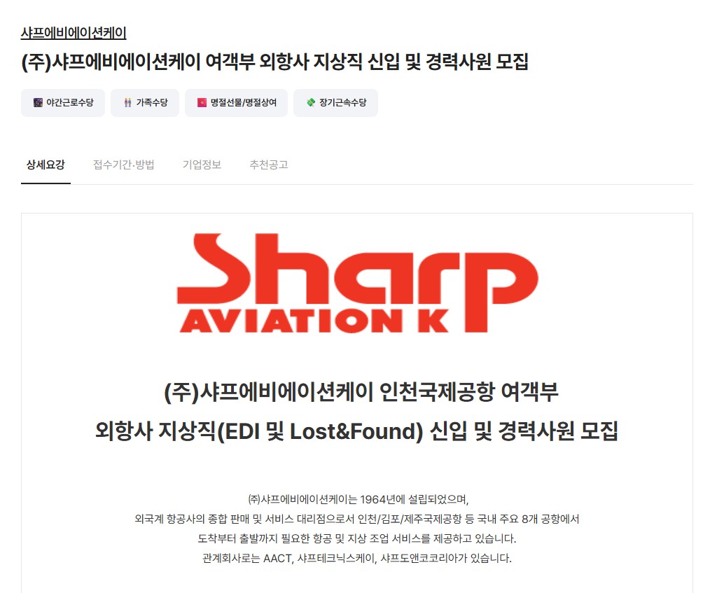 [(주)샤프에비에이션케이] 여객부 외항사 지상직 신입 및 경력사원 모집