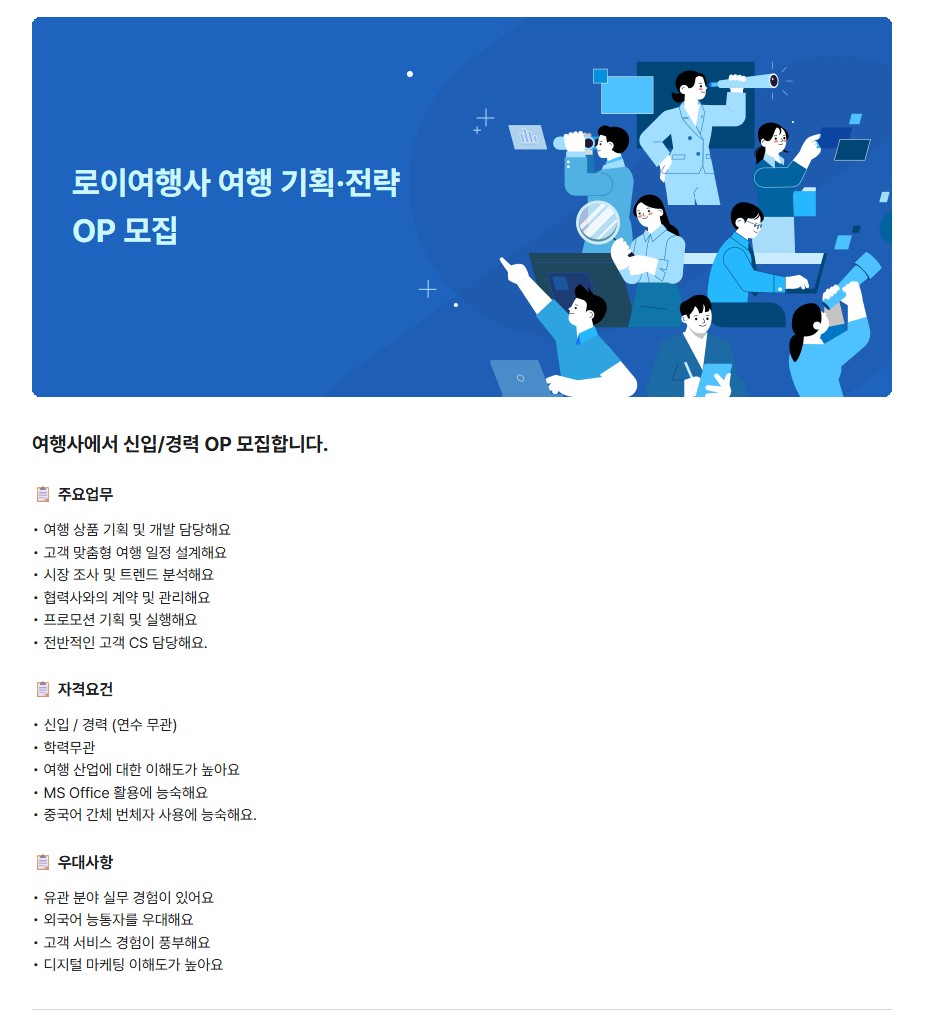 [로이여행사] 여행 기획·전략 OP 모집