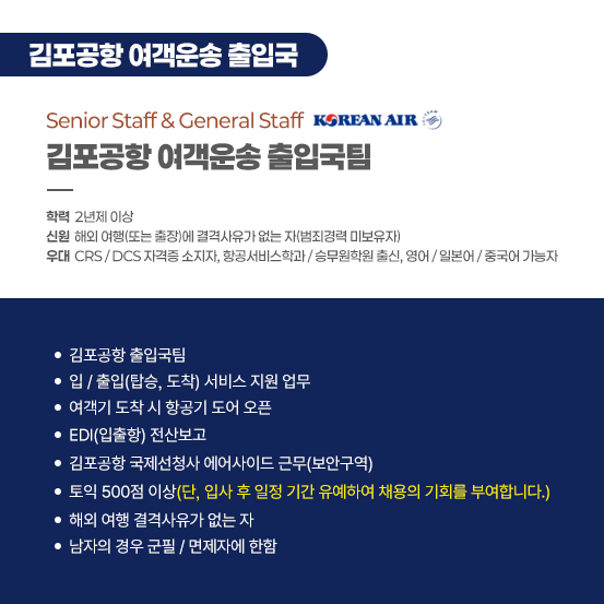 [ANC 정회원 추천채용] MPK 대한항공 김포공항 여객운송업무(지상직) 10월 정규 채용