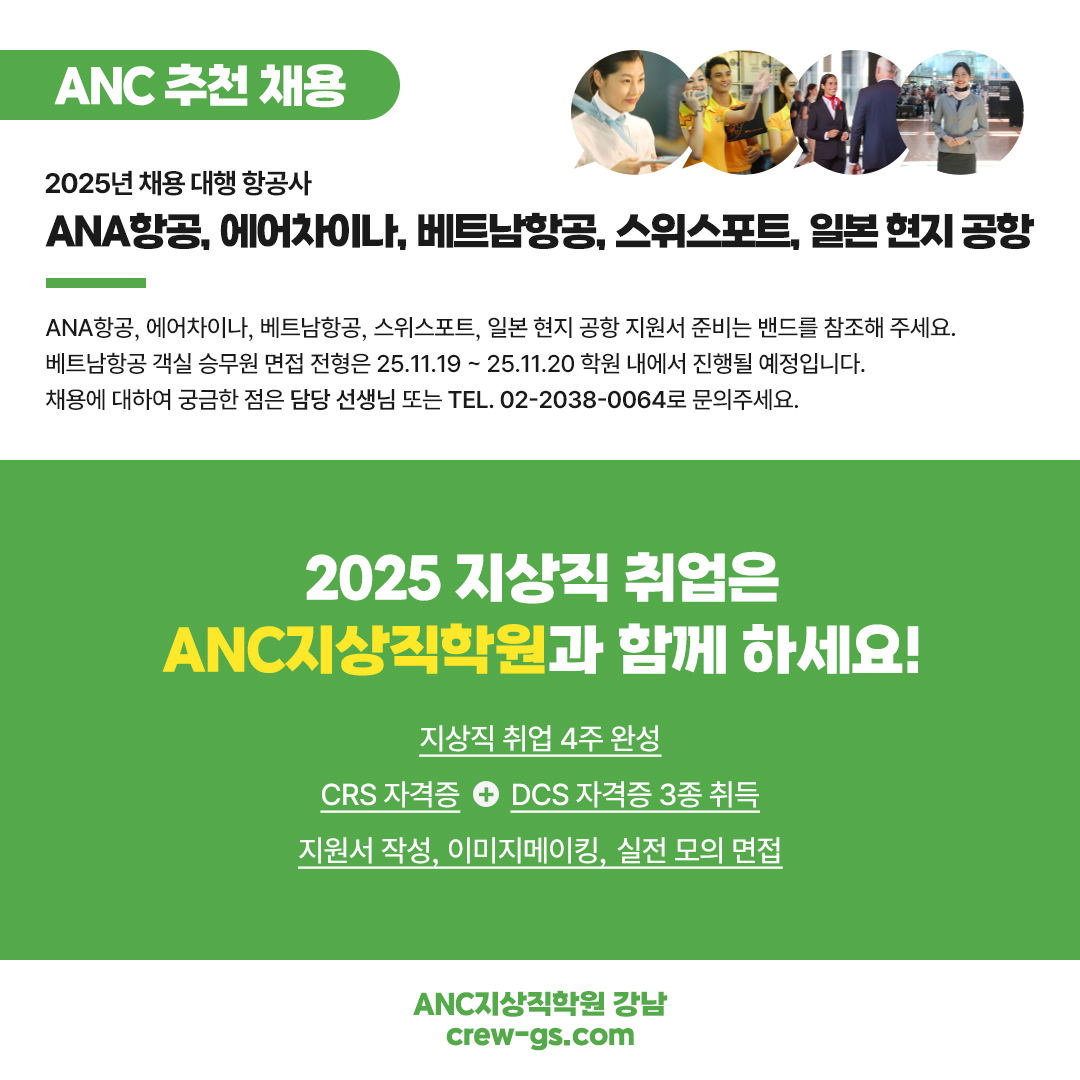 ㈜ 에어라인네트워크센터 ANC승무원평생교육원을 통해 교육 도중 작성된 저작물에 대한 저작권 및 초상권 또는 컨텐츠(사진,동영상)는 합리적인 차원에서 ㈜백아에 귀속하여 활용할 수 있다.