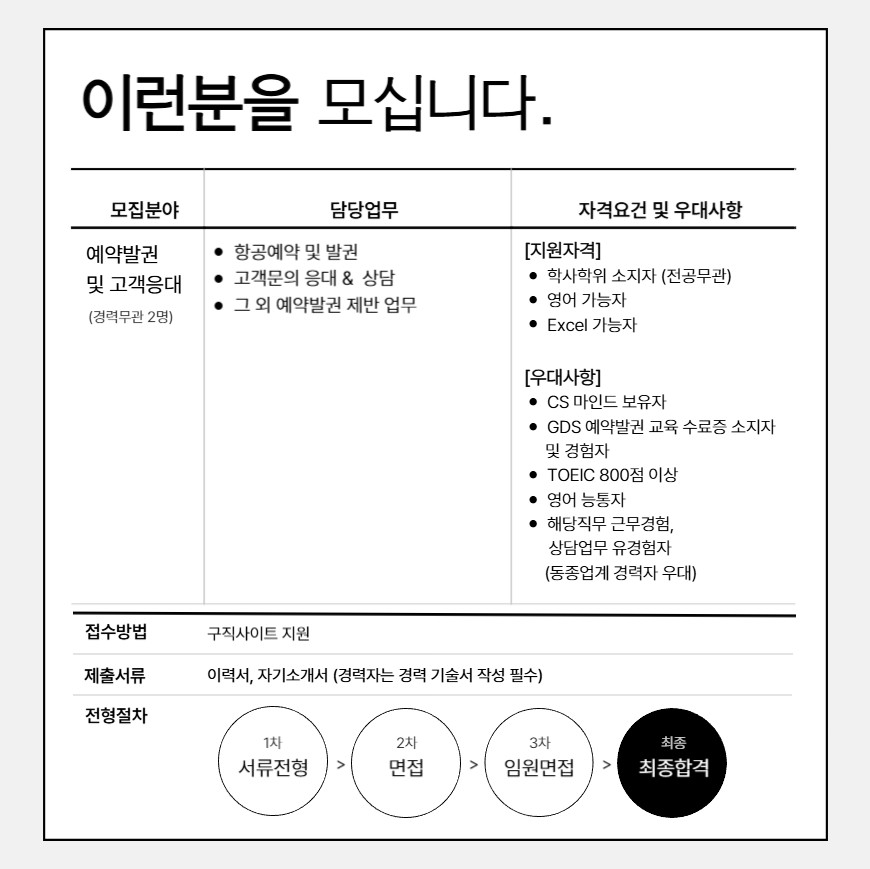 [미방항운] 항공사 예약발권 및 고객응대 채용