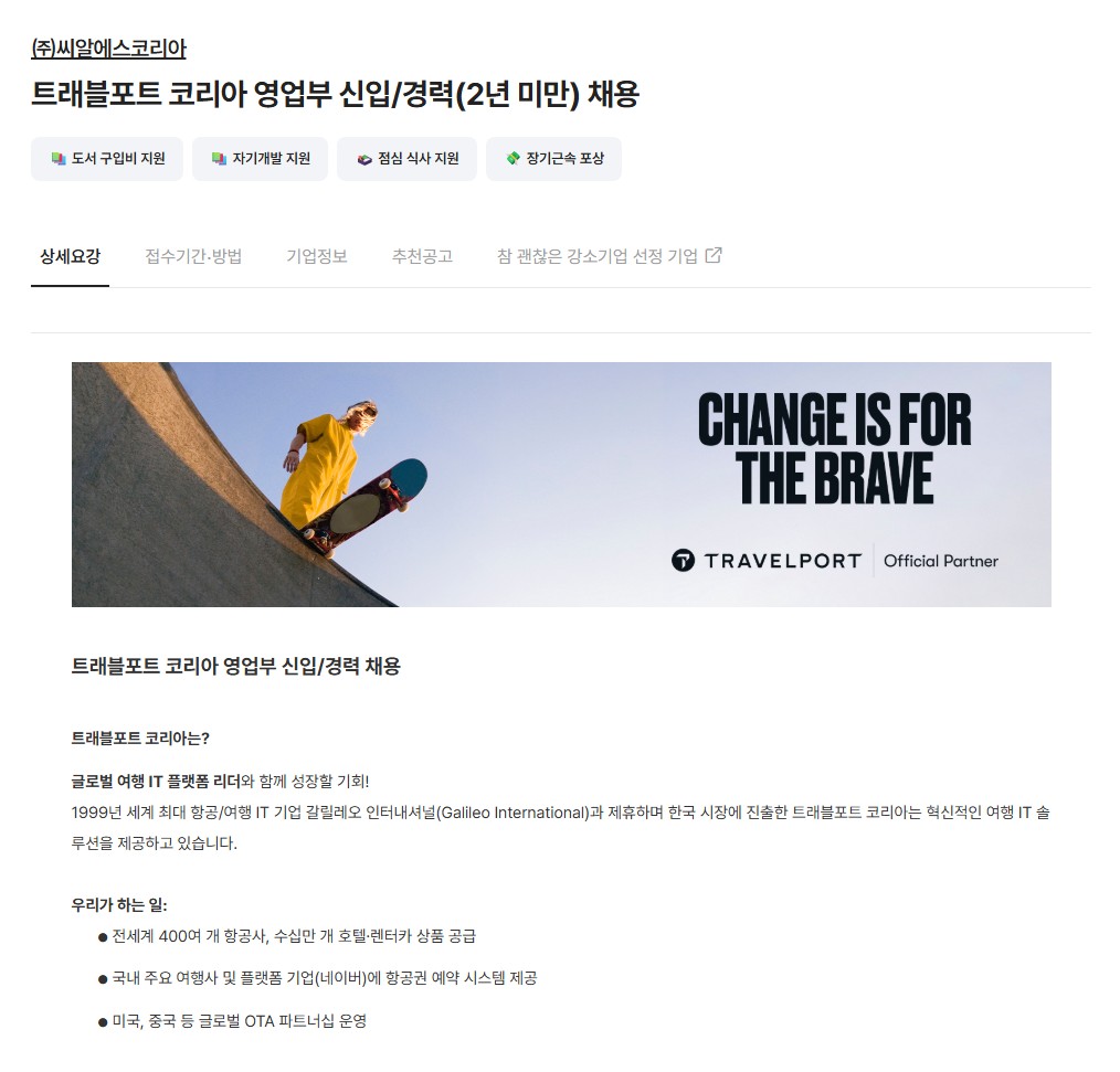[씨알에스코리아] 트래블포트 코리아 영업부 신입/경력(2년 미만) 채용