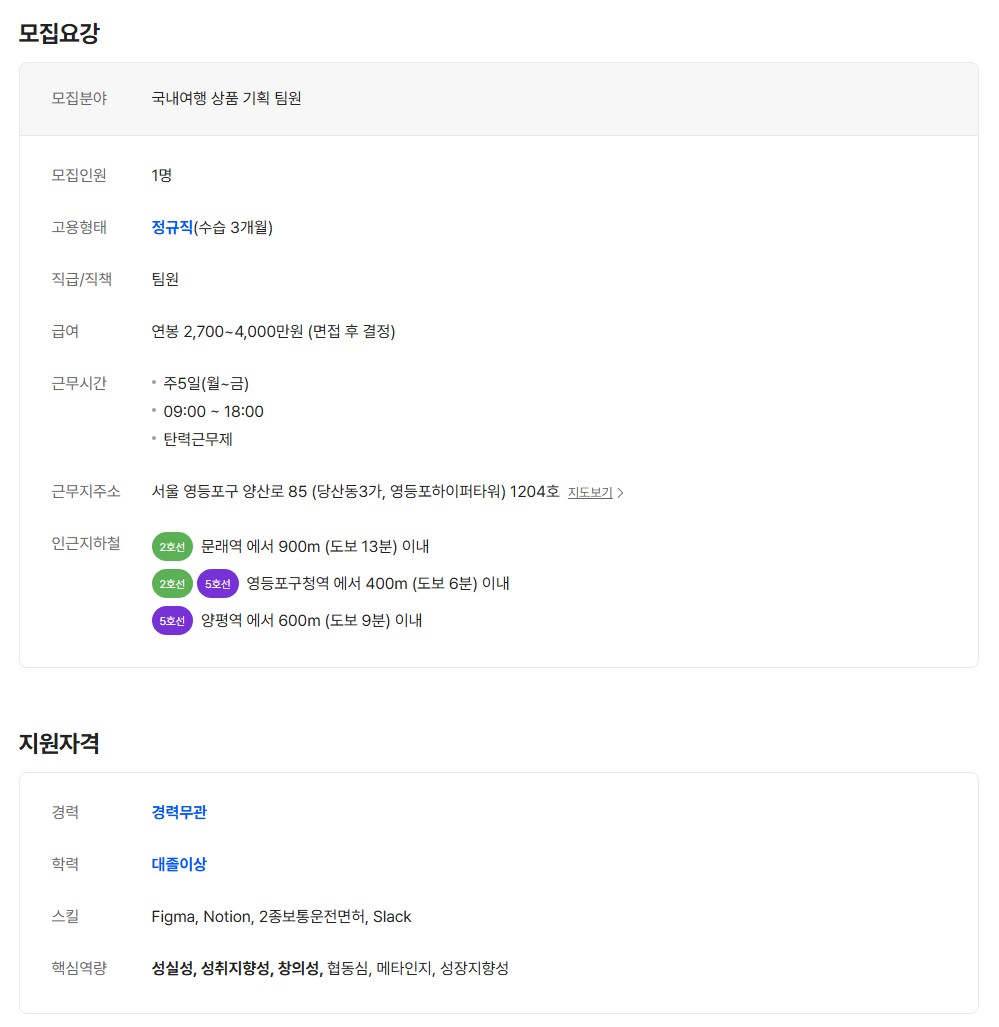 [㈜포페런츠] 여행스타트업 국내여행 상품기획 팀원 모집