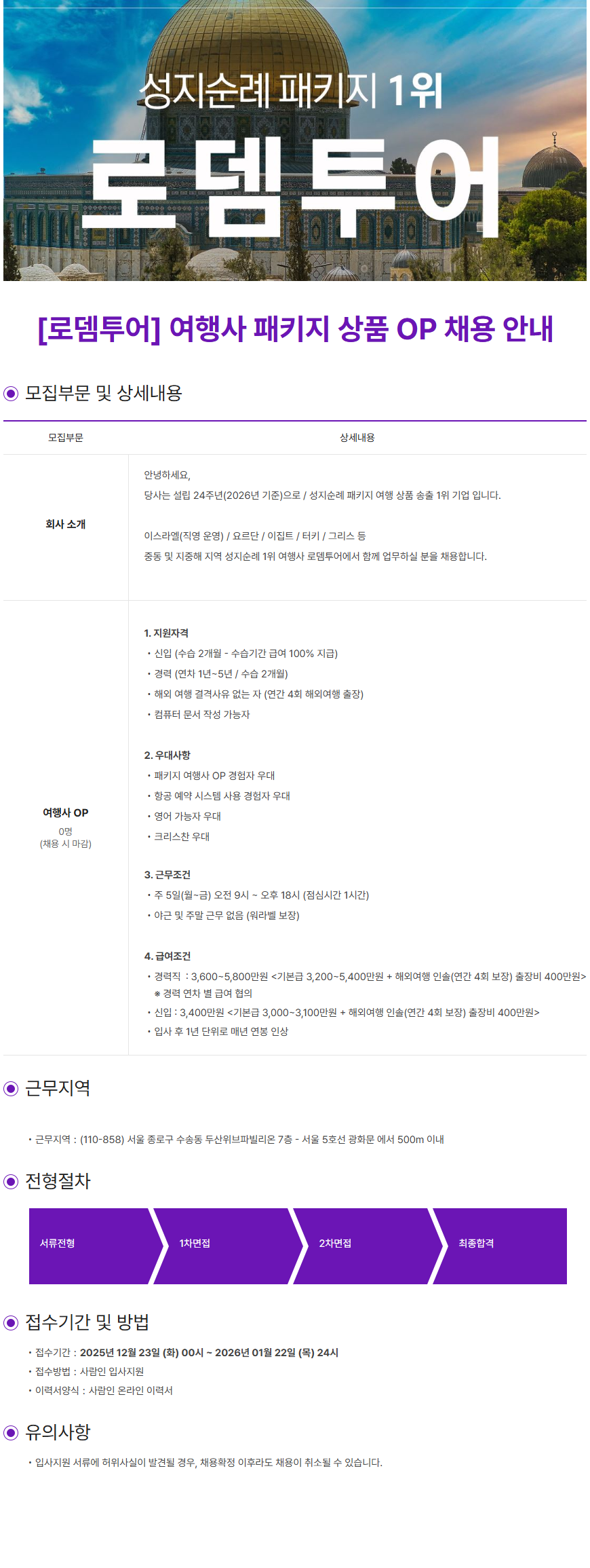 [로뎀투어] 여행사 패키지 상품 OP 채용 안내