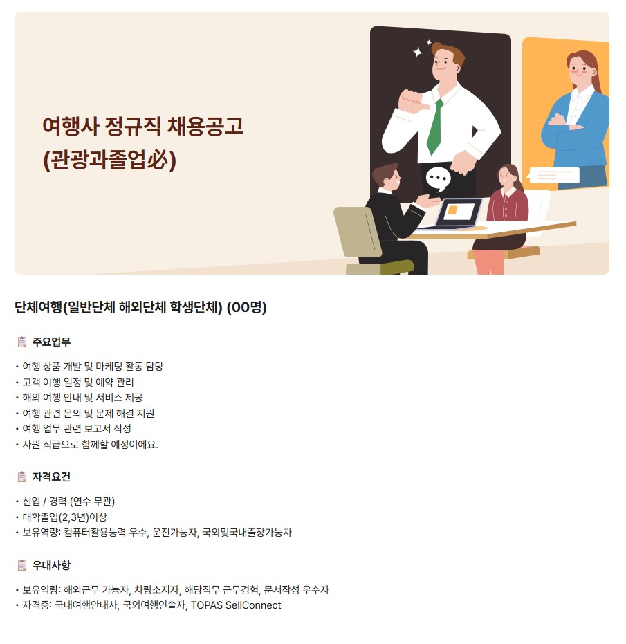[오렌지투어] 여행사 정규직 채용공고(관광과졸업必)