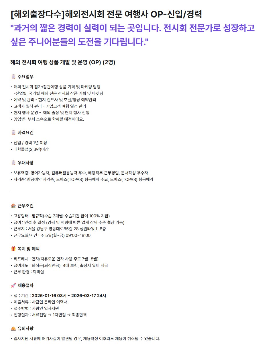 [인터메세항공] 해외전시회 전문 여행사 OP-신입/경력