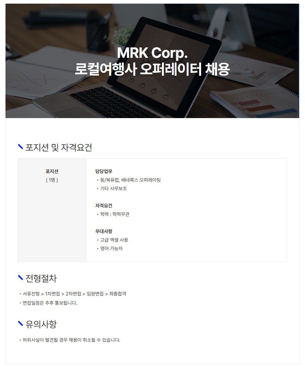 [MRK Corp.] 동/북유렵 로컬여행사 오퍼레이터 채용