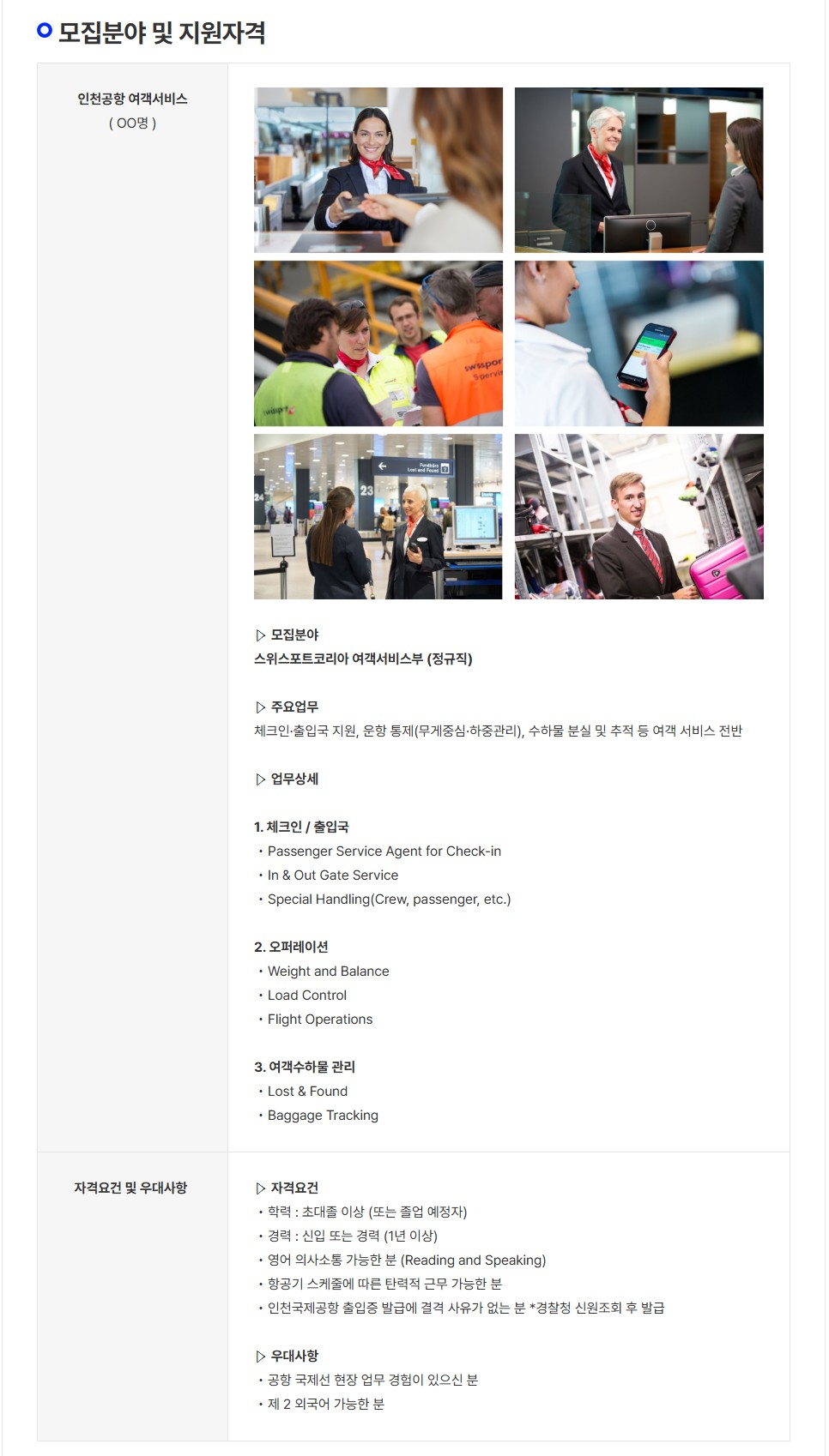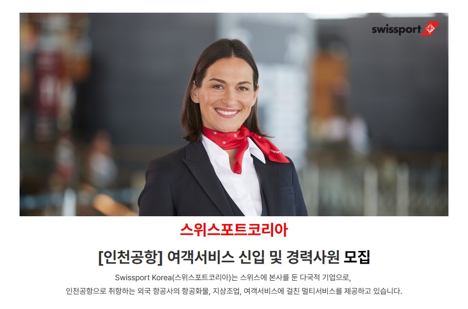 [스위스포트코리아㈜] 인천공항?여객서비스 정규직 채용 - 연봉 3,400