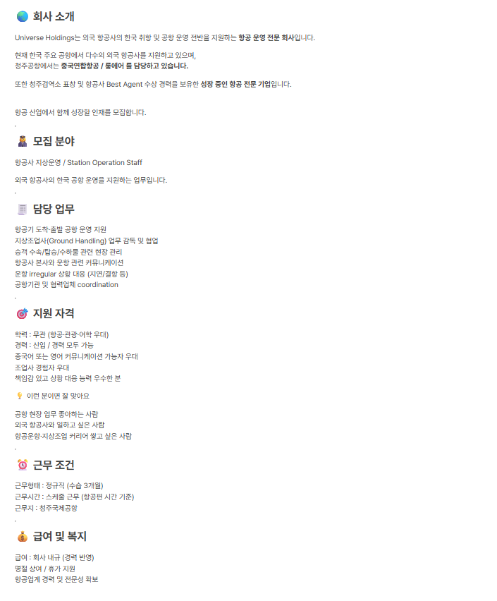 [우주홀딩스] 중국연합항공/롱에어 공항 스테이션 매니저 청주공항 신입 채용 (학력 무관)