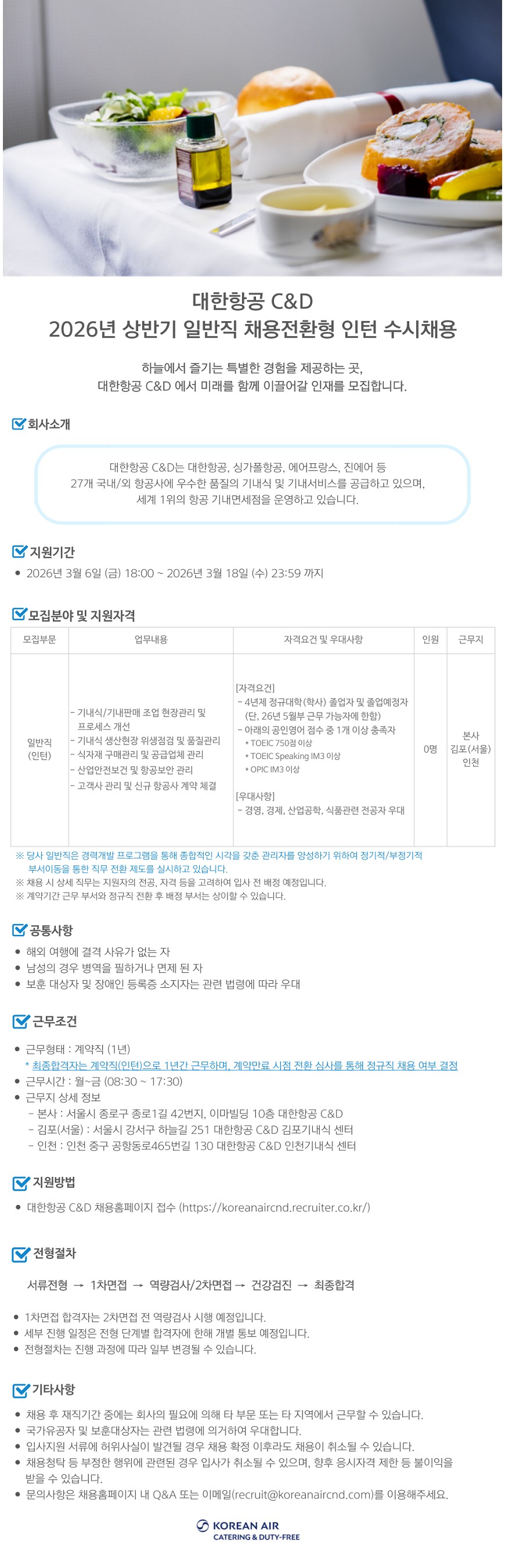 [대한항공씨앤디서비스] 2026년 상반기 일반직 채용전환형 인턴 수시채용