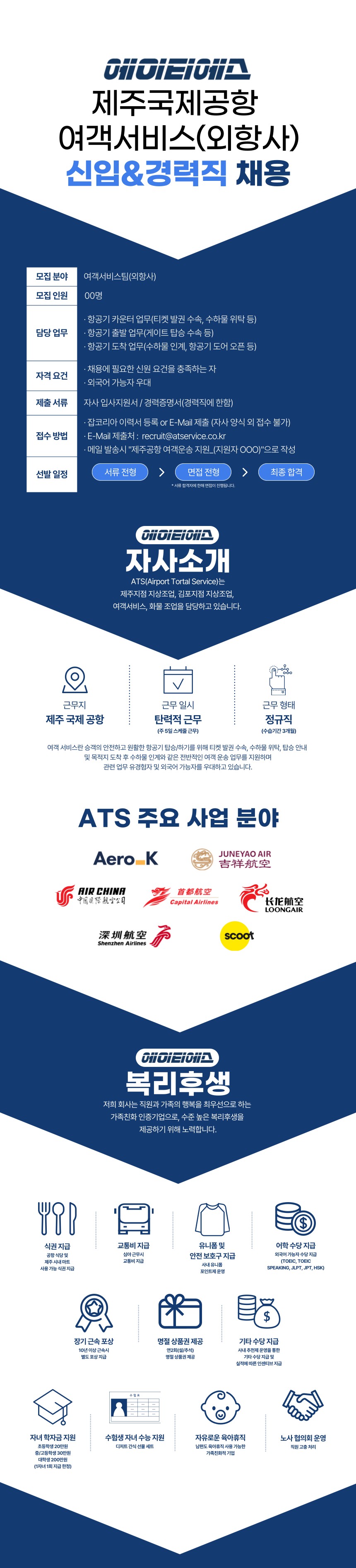 [㈜에이티에스제주] 제주국제공항 외항사(에어차이나 등) 여객운송 지상직 직원 채용