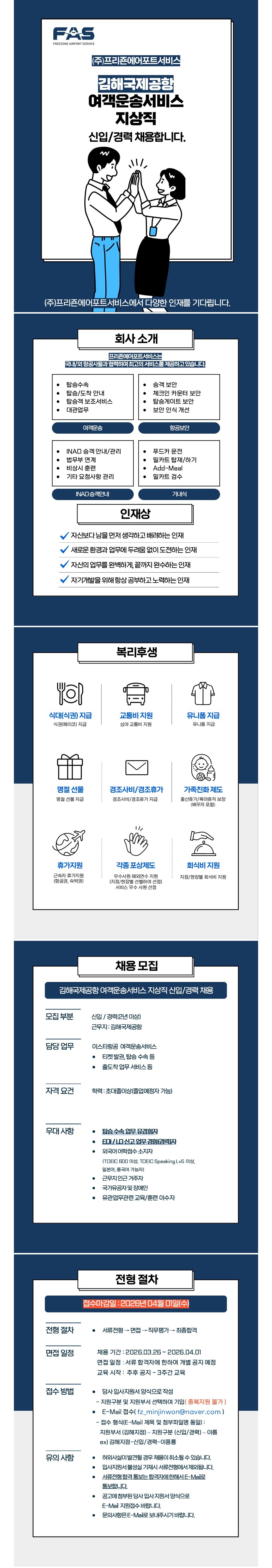[㈜프리죤에어포트서비스] 김해국제공항 이스타항공 여객서비스 지상직 직원 채용