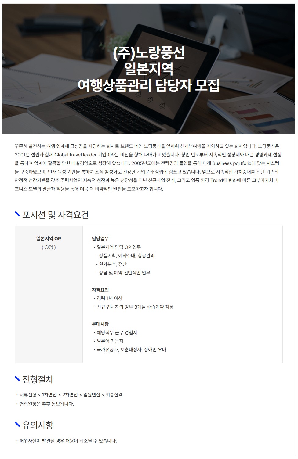 [(주)노랑풍선] 일본지역 여행상품관리 담당자 모집