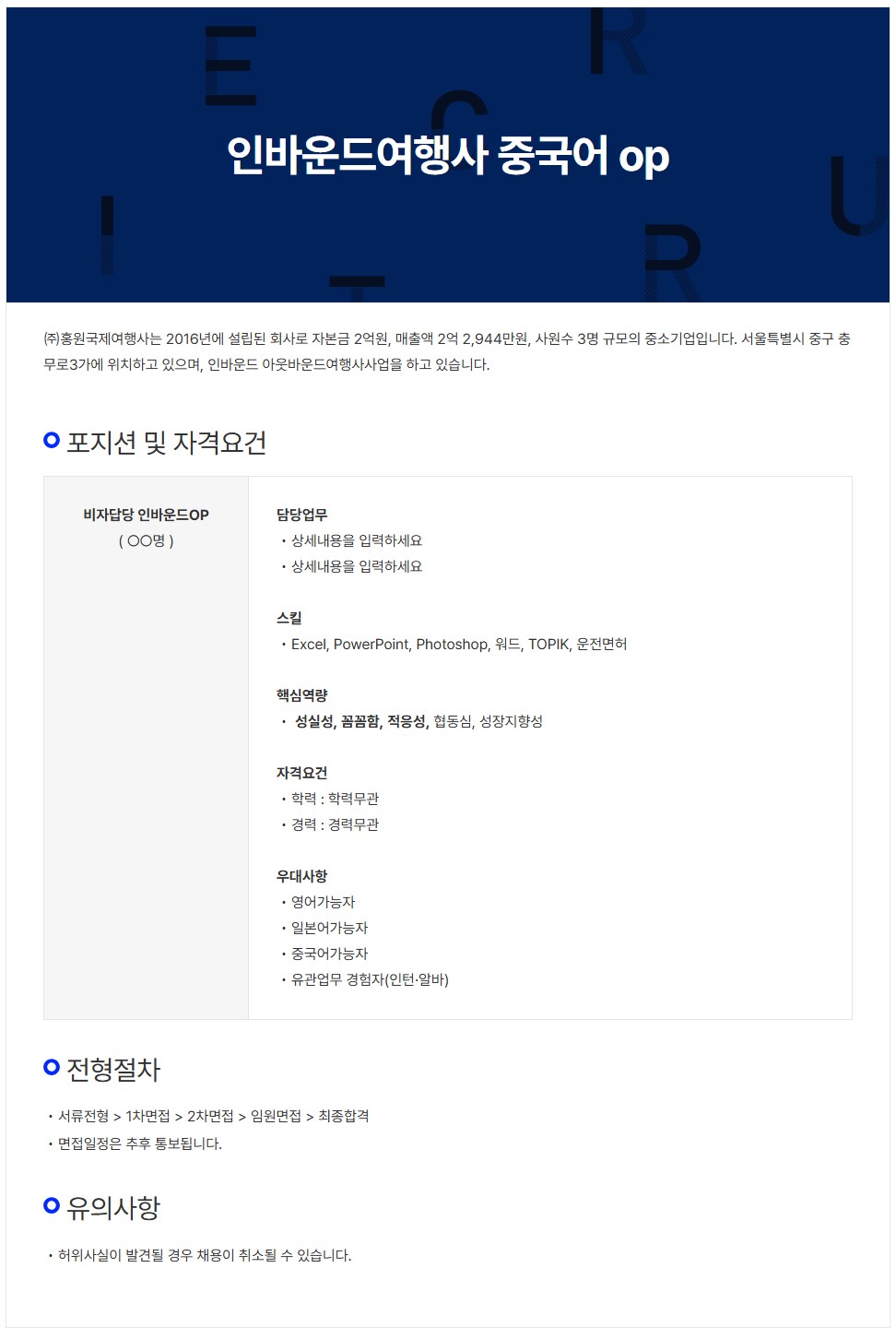 [㈜홍원국제여행사] 인바운드 여행사 중국어 op