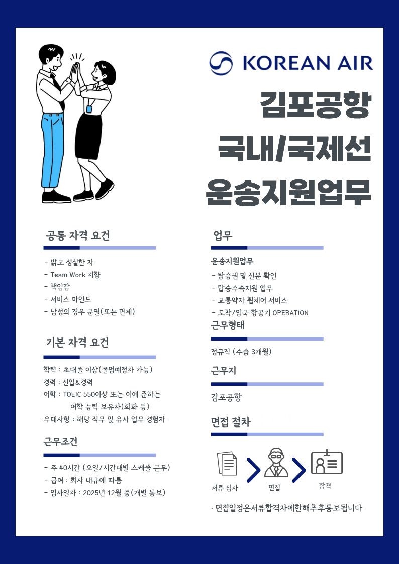 [유니에스] 김포공항 국내선 대한항공 여객서비스 (한가족 서비스)