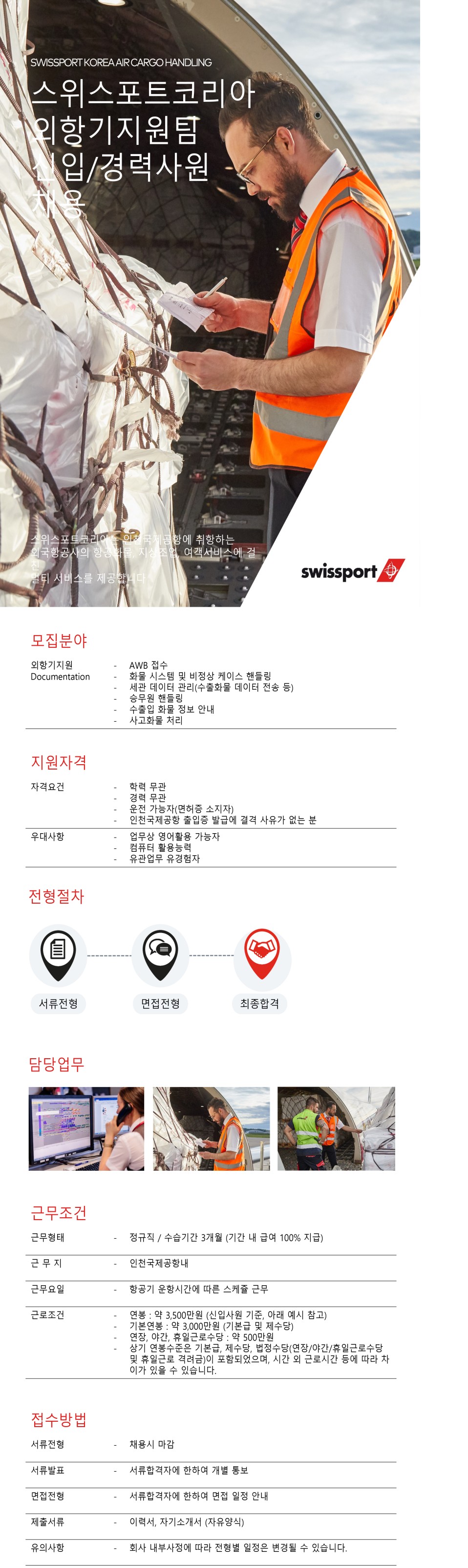 [스위스포트코리아] 인천공항?외항기지원팀(항공화물) 신입/경력사원 모집