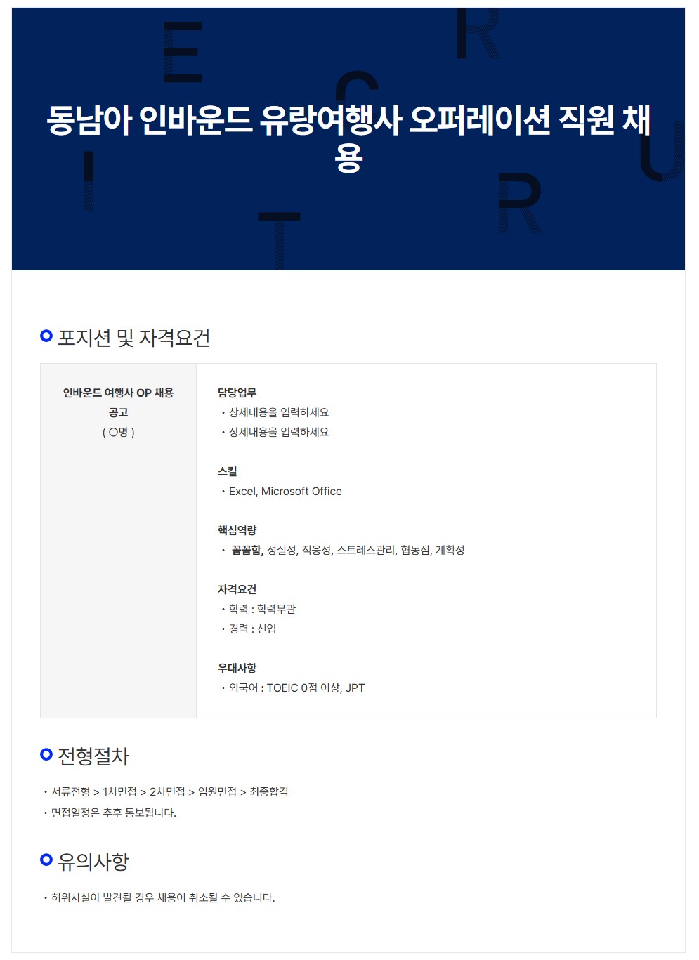 - 성명, 전화번호, 나이, 성별, 키, 몸무게, 최종학력, 외국어능력