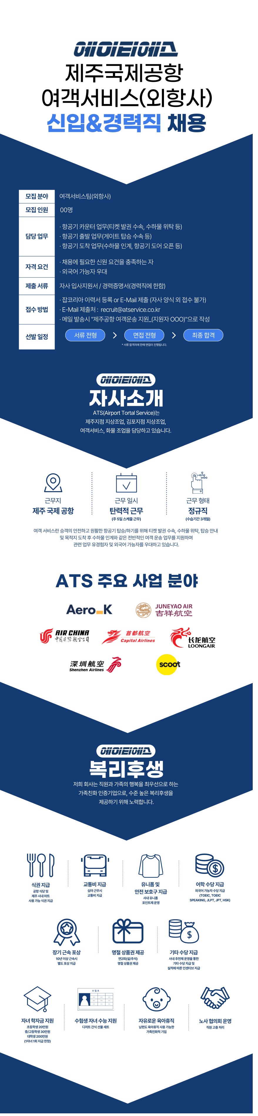 [㈜에이티에스제주] 제주국제공항 외항사(에어차이나 등) 여객운송 지상직 직원 채용