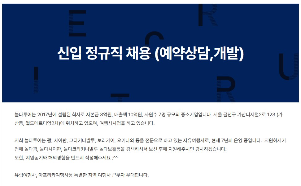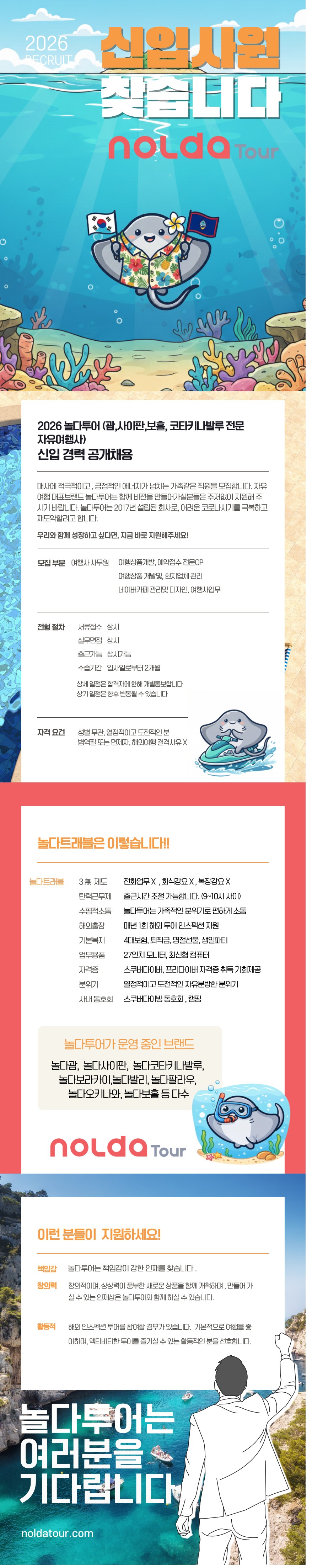 [놀다투어] 해외 자유여행 전문브랜드 놀다투어에서 함께 성장하실 분 모집