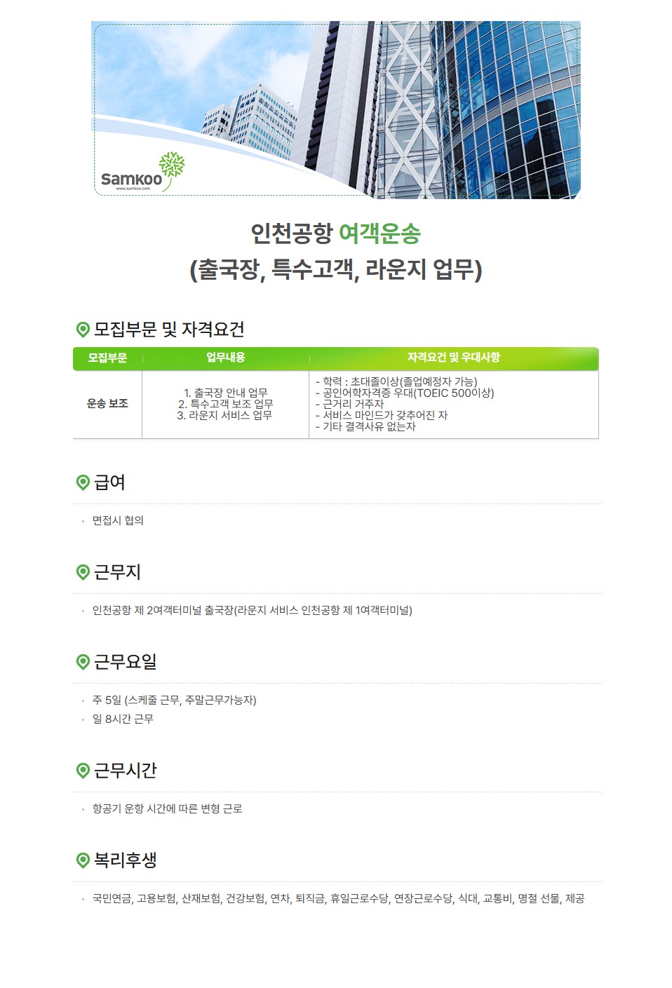 [㈜삼구엘에스] 인천공항 여객운송 업무 (출국장, 특수고객, 라운지)