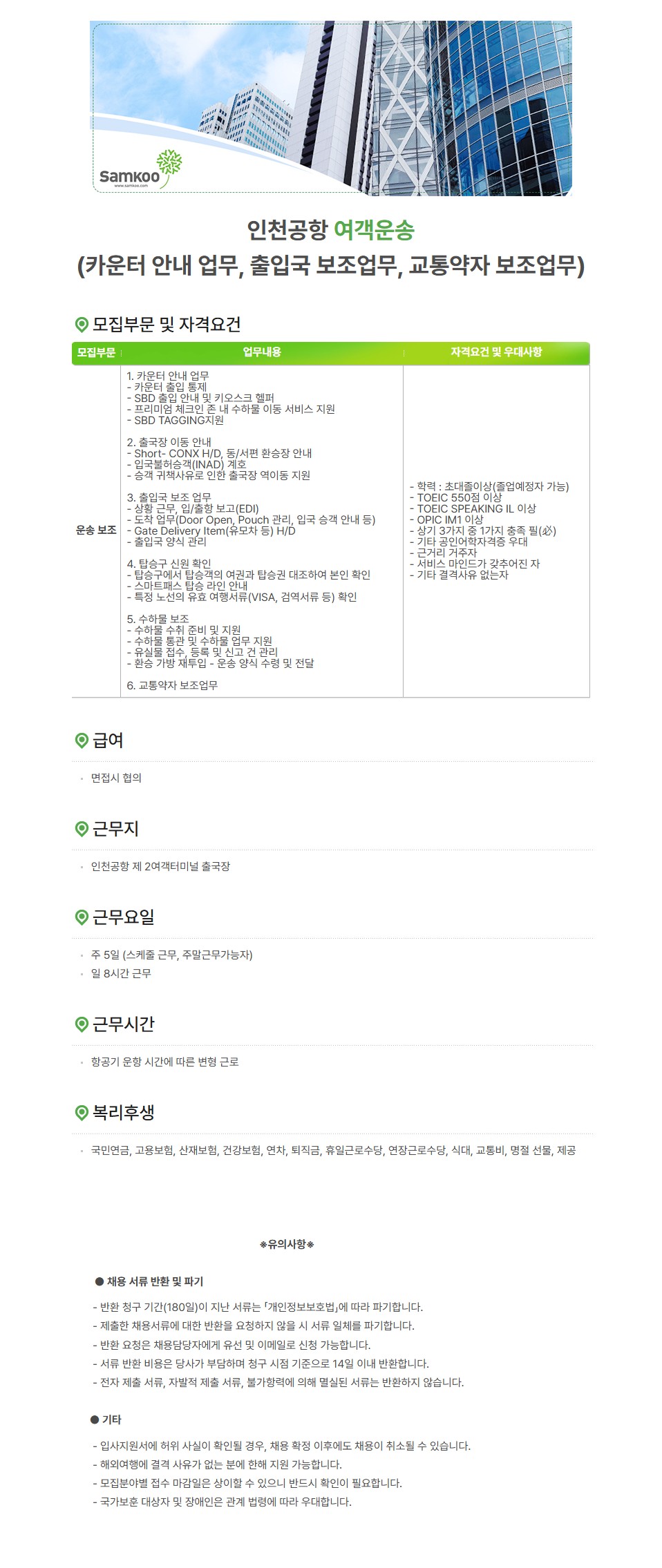 [㈜삼구엘에스] 인천공항 여객운송 보조업무