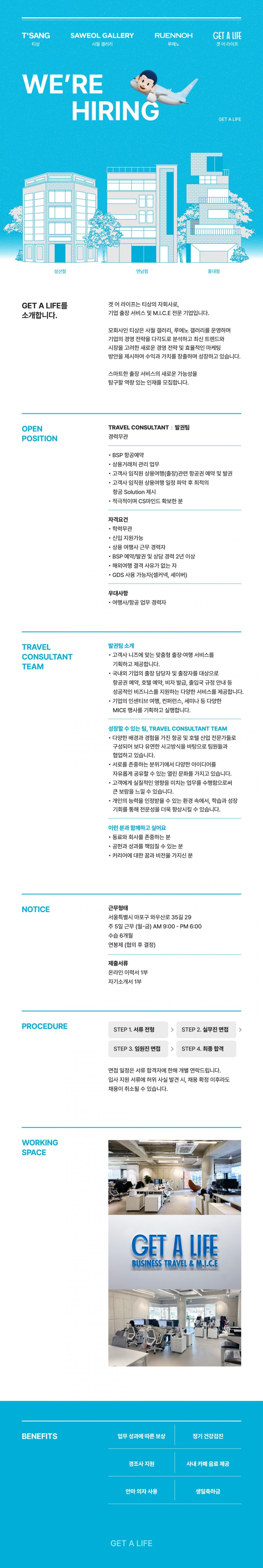 [지에이엘] GET A LIFE 법인 여행사 항공 예약 발권팀 채용